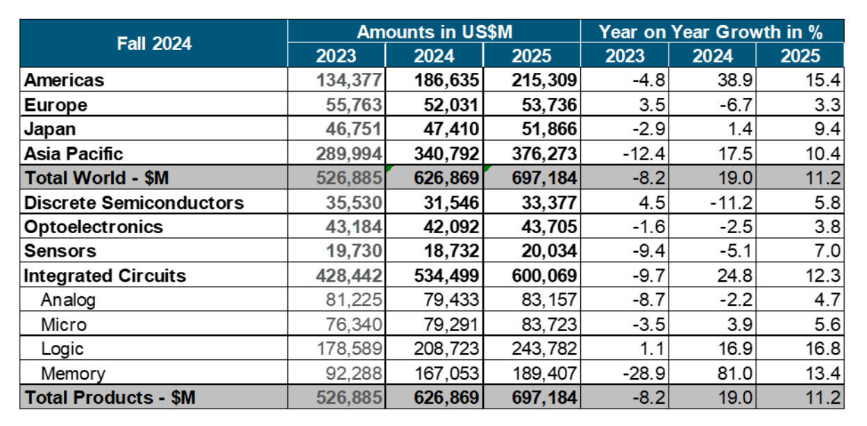 按照世界半导体商业统计组织(WSTS)正在2024年12月发布的秋季预测演讲,2025年全球半导体市场规模估计将比2024年增加11。2%,达到6970亿美元摆布。此中,亚太地域估计将连结10。4%的较高增加率,继续正在全球半导体市场中阐扬主要的增加引擎感化。此次要得益于亚太地域正在半导体系体例制、封拆测试等范畴的强大财产根本,以及正在消费电子、5G 通信、人工智能等新兴手艺使用方面的快速成长。